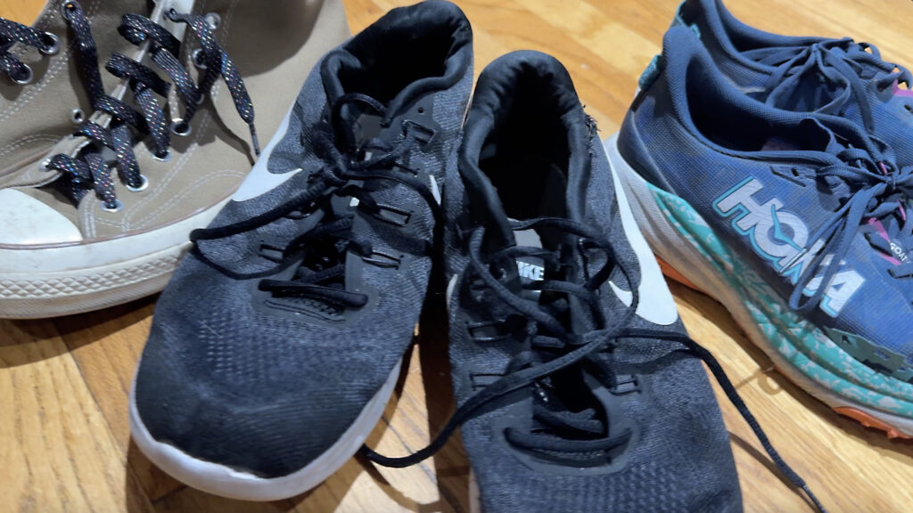 My current system for trips longer than a couple of days involves having two shoe choices and three sock choices. Everything is fairly lightweight so it won’t slow you down on the water or break your back on the portage trail.